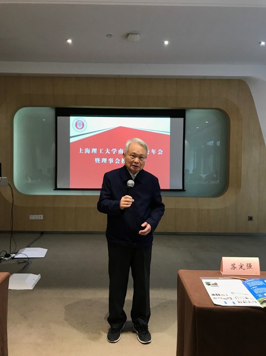 杰出校友、苏定强院士表达了对母校的真挚感谢,他为学校自沪江大学以来培养出包括众多院士在内的各行各界人才感到欣慰,也非常高兴看到母校能动学院、光电学院、外语学院等学科发展壮大。他回顾了与已故杰出校友闵乃本院士交往的往事,分享了南京校友会的工作内容及母校领导关心南京校友会发展的点点滴滴。
