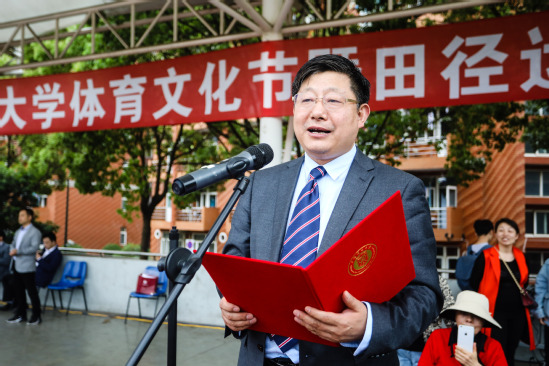 校长丁晓东致开幕词。他指出,当前正是我校建设高水平大学的关键时期,学校将不忘初心、牢记使命,秉承服务学生成长成才的宗旨,着力加强校园文化建设,特别要进一步加快体育课程改革,推动体育社团和阳光体育活动蓬勃开展,不断培养出德智体美劳全面发展的高素质人才,让学生朝着更快、更高、更强的目标冲刺,心怀伟大的梦想奔向更广阔的舞台。希望通过体育文化节让广大师生充分发挥自己的运动才华,尽情释放对体育的热爱,享受竞争、拼搏、奋斗、成功带来的喜悦,并不断突破自我,追求卓越,以新的更好的成绩向新中国成立70周年献礼。