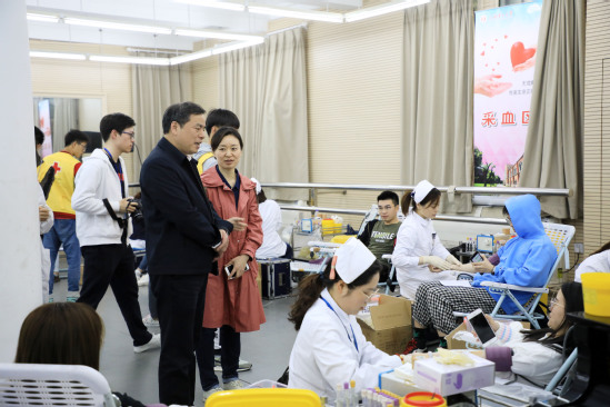 5月6日至9日,我校组织的2019年无偿献血活动在大礼堂火热开展,校长丁晓东,副书记、副校长盛春,副校长吴忠分别到献血现场看望和慰问了献血师生、医务人员和志愿者们,并向无偿献血的师生和工作人员表达亲切的问候和崇高的敬意!