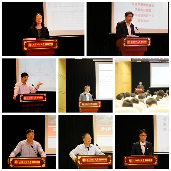 会上,李景玉对基础学院学风建设进行汇报,从学风建设举措、第一学期期末成绩分析、学风现状调查、未来设想及建议四方面展开。她指出,基础学院学风建设方案采取了六大举措,以规章制度保障学风建设,以过程管理强化学风建设,以优良校风推进学风建设,以和谐宿风加强学风建设,以创新创意大赛引领人才培养,以评奖评优激励学风建设。此外,她还针对学风现状的问题及原因,从三大方面提出未来设想及建议,旨在基于学生需求视角提升学生修身立德、勤于为学的原生动力。