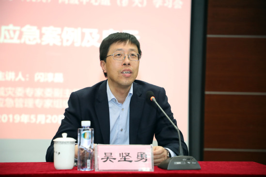 为了进一步深入学习贯彻习近平总书记关于总体国家安全观的重要论述和在省部级主要领导干部坚持底线思维着力防范化解重大风险专题研讨班开班式上的重要讲话精神,切实增强领导干部底线思维和防范风险意识,提高危机管理能力,5月20日下午,学校在图文中心报告厅举行校、院(机关)两级中心组(扩大)学习会,此次学习会也是2019年上海市高校军事课骨干教师及专武干部培训班的培训课程之一。会上邀请了国家减灾委专家委副主任、国务院应急管理专家组组长闪淳昌教授作“城市管理应急案例及启示”专题报告。校党委书记吴坚勇主持报告会并讲话。