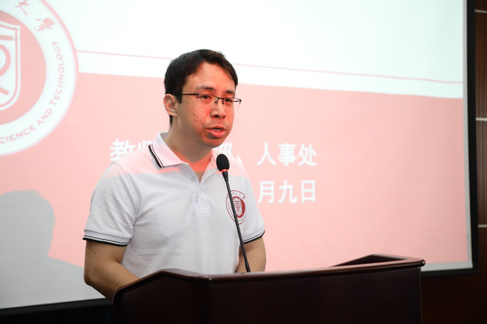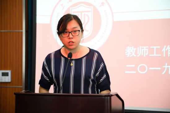 吴坚勇在总结讲话中对加入上海理工大学大家庭的各位新教师们表示热烈欢迎,并代表学校向2019年度青年教师培养计划入选者表示衷心祝贺。他指出,人才队伍建设是学校事业发展的关键,青年教师则是学校未来发展的栋梁。近年来,学校大力实施“人才强校”战略,在高水平大学建设中,将师资队伍建设尤其是青年教师培养放在了重要位置,促进青年教师早日成为学校教学科研的中坚力量。同时,他提出三点想法,与各位新教师们共勉:一是做学校事业发展的主人翁,知晓校史校情,爱岗敬业,尽快完成岗位身份的角色转变。二是做学生成长道路上的引路人,以德立身、以德立学、以德施教,“润物细无声”地影响学生、感染学生。三是做高水平大学建设的贡献者,认清自身的发展形势和所处方位,聚焦优势领域,有所作为,实现跨越式发展。一代人有一代人的奋斗,一个时代有一个时代的担当,他希望所有新进老师们不忘初心、砥砺前行,勇克难关、追求卓越,与学校同步伐、与民族共命运、为祖国齐奋斗,为早日建成特色显著的一流理工科大学而不懈奋斗。