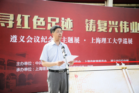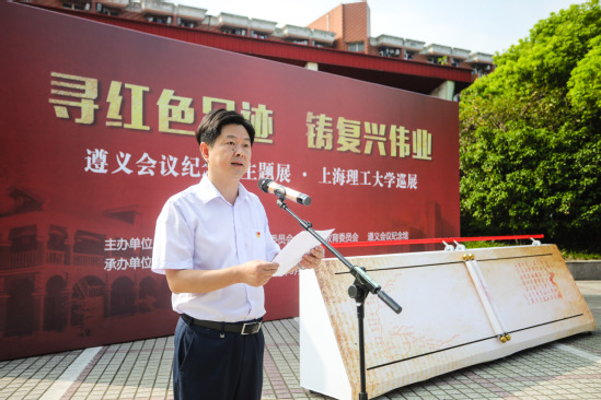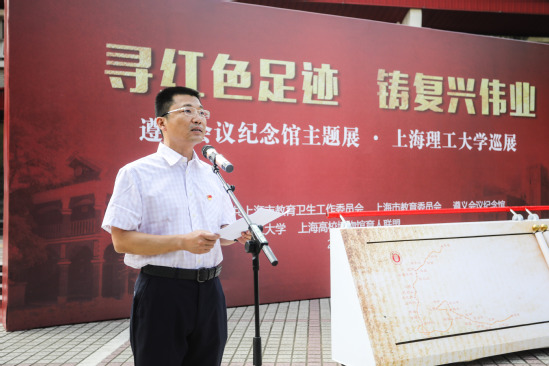 为深入开展“不忘初心、牢记使命”主题教育,弘扬艰苦奋斗的革命精神,9月12日上午,“遵义会议、伟大转折——遵义会议纪念馆主题展览”上海理工大学巡展拉开了序幕。本次主题展览由中共上海市教育卫生工作委员会、上海市教育委员会、遵义会议纪念馆主办,上海理工大学、上海高校博物馆育人联盟承办,以“寻红色足迹铸复兴伟业”为主题。市教卫工作党委副书记、市教委副主任李昕,遵义市委常委、副市长、上海市第三批援黔联络组组长尼冰,遵义会议纪念馆馆长陈松,市教委德育处处长沙军,校领导吴坚勇、丁晓东、刘道平、盛春、刘平、赵明、张华,校党委常委、组织部长孙红,校党委常委、宣传部长叶磊和全体中层正职干部出席开幕式,开幕式由校党委副书记孙跃东主持。