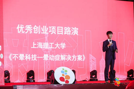 “中国80%的人都经历过不同程度的晕动反应,即俗称的晕车或晕船。我自己就是个严重的晕车患者,长途旅行对我来说是个灾难。现在,我们设计了一款‘不晕眼镜’,只要戴上,10分钟就能解决晕动症。”颇显自信的上海理工大学中英国际学院大三学生余昊源在演讲台上介绍项目,他参与的这个“不晕眼镜”项目获选了此次的最佳创业报告奖。