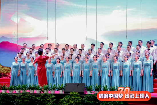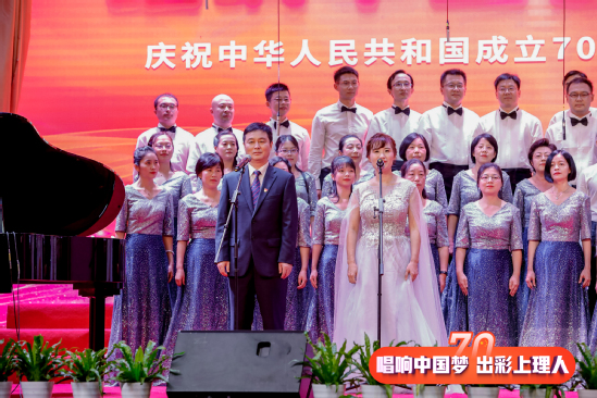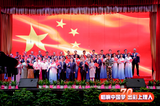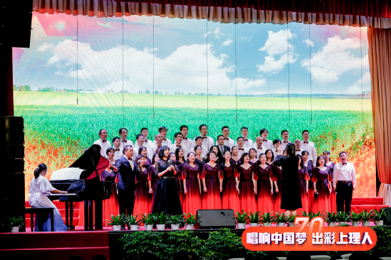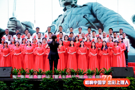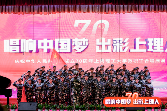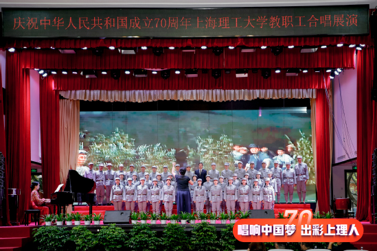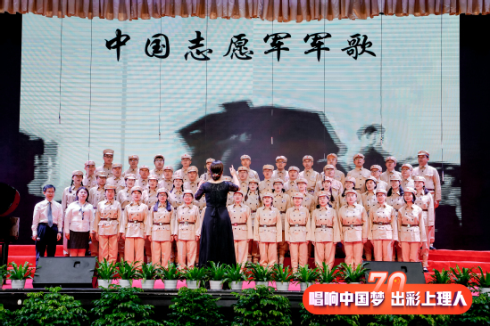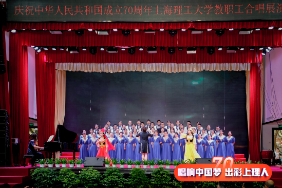 “五星红旗迎风飘扬, 胜利歌声多么响亮;歌唱我们亲爱的祖国, 从今走向繁荣富强”。最后,伴随着优美的旋律,全场的老师们在上海理工大学沪江之声合唱团的带领下,深情高歌《歌唱祖国》,上海理工大学教职工合唱展演在豪迈激昂的歌声中圆满落下帷幕。