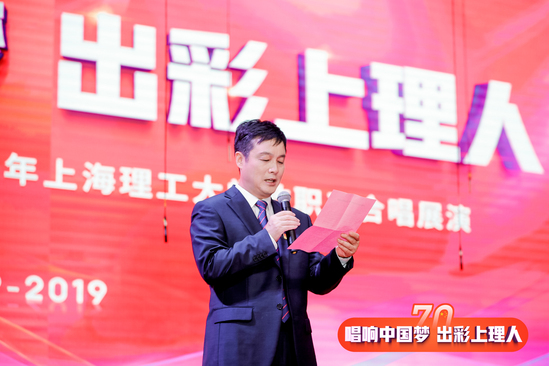 校长丁晓东在致辞中谈到,今天我们隆重举行庆祝中华人民共和国成立70周年教职工合唱展演,共同用美好的歌声,回顾中国共产党领导中国人民走过的波澜壮阔而又艰辛曲折的奋斗历程,讴歌祖国发展建设改革创新取得的伟大成就,抒发上海理工大学全体师生不忘初心、牢记使命的爱国情怀。我们也将以此为契机,进一步激发新时代与祖国共奋进的爱国情、报国志。不断增强“四个意识”,坚定“四个自信”,做到“两个维护”,用嘹亮的歌声,抒发上理人新时代的豪情壮志;用豪迈的激情展示担当作为、攻坚克难的决心和毅力;用美妙的旋律憧憬美好的未来。