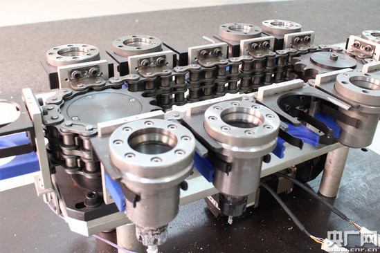 “AGV集成搬运机器人”担纲全场总调度,灵活地将加工料分配到指定的分拣平台;装有多组全向旋转齿轮的“物料全向输送装置”则可以将物料旋转到合适角度等待“搬运工”搬走;“AGV工厂搬运机器人”取代了原先辛苦繁忙的搬运环节,驳运加工料、驳运成品件都由它来完成;“智能机械臂”代替操作工,根据需求灵活切换“包角”“铣”“钻”等12个工具头并进行工件加工……机器们“乖乖听话”,整个环节流畅自如,不但节省了人力成本,更是提高了机械制造的效率。