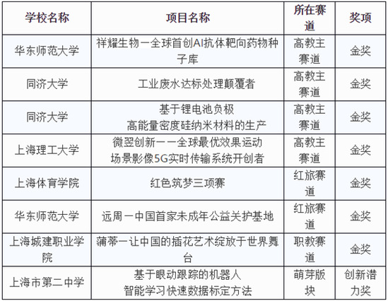 第五届中国“互联网+”大学生创新创业大赛,上海获奖名单。