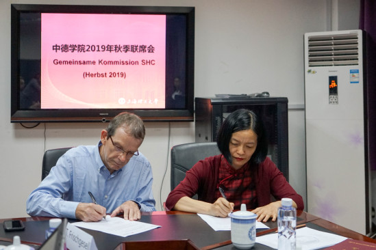 首先,蔡永莲副校长对出席本次会议的成员表示了欢迎,杨承三宣布了联合管理委员会及联合考试委员会人员变动情况。主要变动为:由中德双方专业负责人担任委员、由教务处宋丹萍副处长担任联合考试管理委员会主席,双方就此签订了备忘录。中德双方团队就学院最新运营工作情况进行了汇报,对于专业扩招和学费调整计划中出现的问题,杨承三表示目前正在积极寻求其他解决方案,争取早日提高学费,并实现每年招生。胡特教授汇报了硕士培养项目方案的进展,一是希望尽快建立双方的工作小组,二是正对项目前景进行标杆分析,本学期末将得出结果。