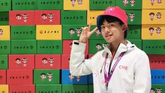 万鸿睿用169只三阶魔方,拼出了一面魔方墙,正面显示出四叶草的图形,在中间则拼出CIIE英语进博会的首字母。