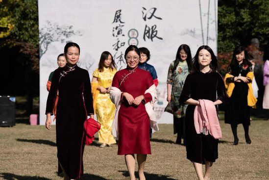 在古琴曲的优美乐声中,上理学子或手执团扇、或手捧竹简,缓缓漫步在阳光下的大草坪上,身着不同色彩、不同形制的汉服的中外学生进行汉服走秀。男生从容的步态尽显彬彬君子的风范,女生飘举的衣袂展现了窈窕淑女的风采。而沪江学院的女教师们则展示了一场靓丽的旗袍走秀。汉服的展演体现了中华文化的源远流长,而旗袍走秀则体现了中华文化伟大的包容精神和创造力,汉服视觉之美和吟诵的声音之美的结合,充分展现了中华优秀传统文化的魅力。
