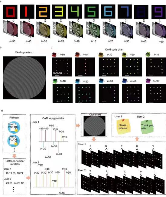 “传统意义上,一把全息‘锁’只有一种解码方式,而我们的研究把‘螺旋光’配成多把‘钥匙’,可以将同一把全息‘锁’解码出不同的信息,收信人根据手里的‘光钥’解读出只有他自己才能看到的最终信息,这就保护了信息传递的安全性。”顾敏说。