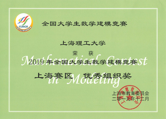 12月27日,2019年高教社杯全国大学生数学建模竞赛上海赛区颁奖大会在华东理工大学举行。我校学子在本次竞赛中成绩斐然,共获得全国一等奖1项,二等奖1项,上海市一等奖2项,二等奖8项,三等奖9项。上海市竞赛组委会对我校的竞赛组织和宣传工作给予了充分的肯定,并向我校颁发了“优秀组织奖”。