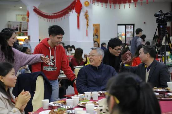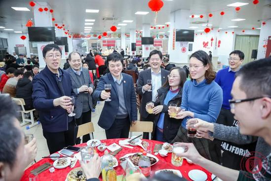 吃年夜饭是中华民族历史悠久的年节习俗,一家人在农历年尾相聚一堂,阖家聚餐,故年夜饭又被称为团圆饭。为了使身在异乡的春节留校学生能感受到家的温暖,上海各高校为留校学生精心准备了丰盛的年夜饭和迎新春联欢会,一起欢度中国年。