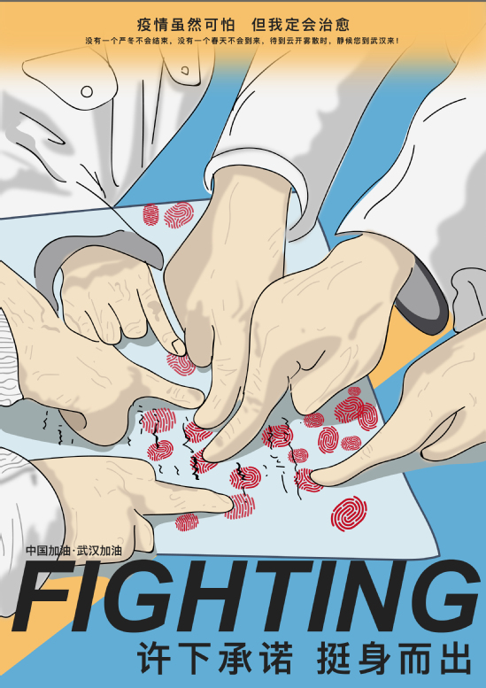 在上海理工大学,出版印刷与艺术设计学院师生发起了“众志成城,以‘艺’抗‘疫’——2020抗击‘新冠肺炎’公益宣传作品征集活动”,他们想要和万千华夏儿女一同,以绵薄之力感谢生命的守护者,以“艺”抗“疫”。学校沪江学院师生也积极行动起来,用一件件作品为武汉加油、为中国加油。