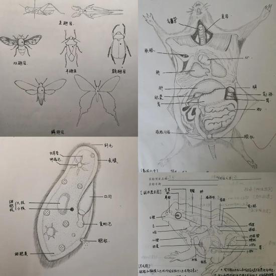 这是我生物学概论实验这门课的笔记和实验报告,画了各种动物的结构、解剖图等。在之后的实验过程中,肯定要对各种实验动物进行解剖或描述等操作,为了更好掌握这些知识,也为了尊重实验动物的生命不使其白白浪费,我认为这样记笔记是一种很好的方法。虽然可能耗时稍长,但印象更为深刻。