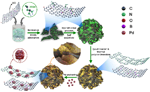 由三维碳杂化骨架构建高效甲酸燃料电池阳极催化剂示意图