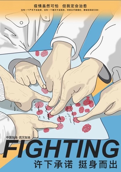 疫情突来,解放军、医护人员、警察、建筑工人等一线工作者并肩相守,守望相助,留下最美身影,震撼人心。上海理工大学出版印刷与艺术设计学院师生发起了一场公益宣传作品征集,希望学以致用,以绵薄之力感谢生命守护者,以“艺”抗“疫”。上理工沪江学院师生积极行动,用一件件作品为武汉加油、为中国加油。活动发起仅1天时间就收到100余副(件)作品,涵盖海报、手绘、剪纸、篆刻、书法等类型,上理工师生用振奋人心的佳作展示战“疫”的决心和能量。