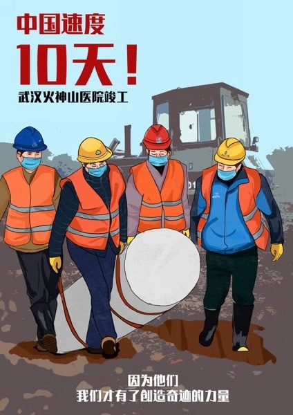 10天竣工,中国速度再一次震惊了世界,曹恬甜的《中国速度》用插画描绘一线工作人员的平凡和伟大,因为他们拥有创造奇迹的力量。