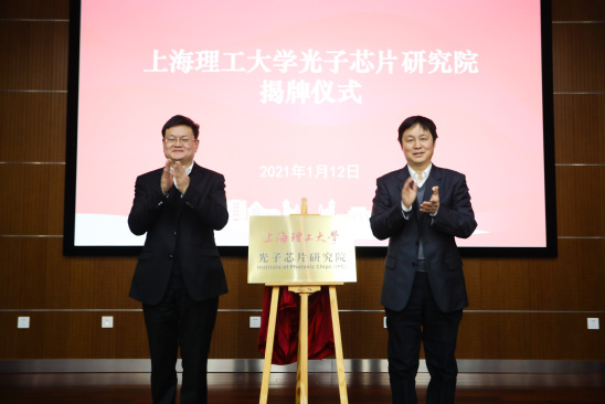 王平与丁晓东共同为上海理工大学光子芯片研究院揭牌