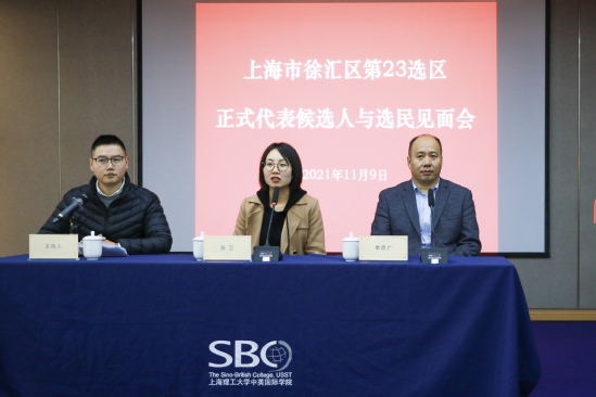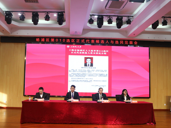 根据《选举法》和《上海市区和乡镇人民代表大会代表直接选举实施细则》有关规定以及杨浦区、徐汇区选举委员会统一部署,结合疫情防控要求,11月9日下午,杨浦区第009选区、第010选区,徐汇区第23选区正式代表候选人与选民见面会活动,分别在上海理工大学军工路主校区北区和南区以及复兴路校区举行,学校党委常委、党委组织部部长孙红,党委(校长)办公室副主任黄志强,徐汇区天平街道慎成居民区党总支书记方华俊分别担任各选区主持人。正式代表候选人、各选民小组长以及选民代表参加见面会。