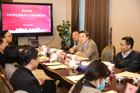 11月11日,上海市人民政府发展研究中心党组书记、主任祁彦,副主任周国平,科研处处长陈群民、信息处处长周师迅、秘书处处长张义春一行来校调研交流。校党委书记吴坚勇、副校长蔡永莲陪同调研,党委(校长)办公室、宣传部、科技发展研究院、规划发展处、管理学院相关负责人出席座谈会。会议由蔡永莲主持。