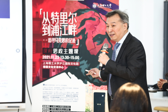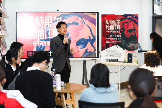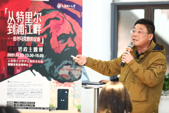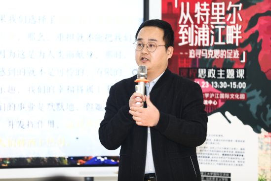 以学生展示环节为引子,在这堂精心打造的“追寻马克思的足迹:从特里尔到浦江畔”课程思政示范课上,主讲人既有校外专家学者、市委党校教师,也有校内专任教师、辅导员,共同为同学们带来一顿丰富的精神大餐。