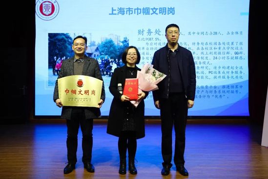 吴坚勇为上海市“巾帼文明岗”财务处颁奖