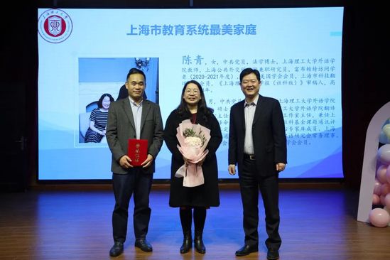 孙跃东为上海市教育系统“最美家庭”陈青、王勇夫妇颁奖