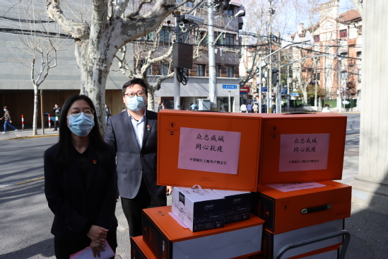 中国银行上海市卢湾支行捐赠的首批抗疫物资到达中英国际学院