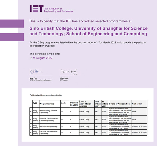 中英国际学院两个工科专业通过英国工程技术学会(IET)认证