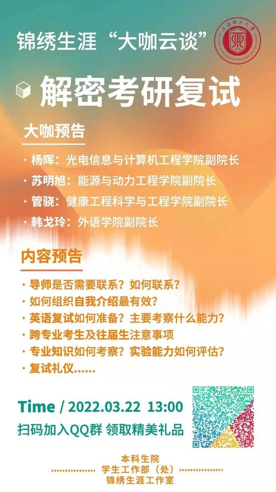 “导师是否需要联系”“如何组织自我介绍”“跨专业考生如何准备”“复试可以化妆吗?”……近期正是新一届研究生复试的关键时期,“锦绣生涯工作室”邀请来自各学院的学术大咖“云端”解密考研复试会碰到的关键问题,助力同学们掌握面试技巧、增强复试信心。针对本校研招复试工作,研究生院也在紧锣密鼓做计划、创条件,保证每一个考生不因疫情影响入学,努力“选好苗”“播好种”。