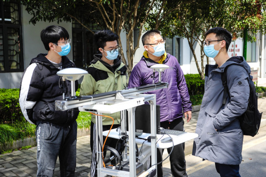 唐宋带领学生调试机器人户外行走系统