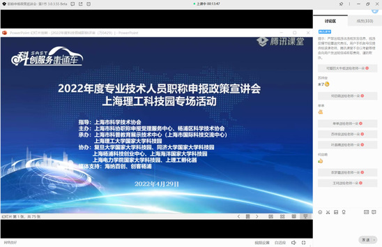 作为一个始终“接地气”的园区,科技园打出优化营商服务“组合拳”,多措并举扶持园内企业健康发展。4月29日,2022年度专业技术人员职称申报政策宣讲会“云端”开讲,近2000位科技工作者学习、了解职称的新政策和申报、准备、评审全流程环节的新要求。作为市科协职称申报受理点的上理工科技园参与承办了这一活动,在上海市科学技术协会的指导下,持续为中小微民营科技企业的科技工作者提供咨询和指导服务。