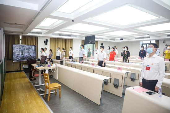 开幕式结束后,各代表团就学校2021年工作报告等相关待审议事项进行了分组讨论,全体校领导分别参加了各代表团的讨论。各代表团充分肯定了学校一年多来取得的成绩,并纷纷围绕学校“十四五”规划、全年重点工作向学校建言献策,对学校在人才培养、科研与学科建设、师资队伍建设、学校发展和管理等方面,提出诸多宝贵的意见和建议。7月8日下午,第五届教职工代表大会暨第五届工会会员代表大会第六次会议完成各项议程,圆满闭幕。大会听取了提案审查处理工作委员会主任刘彬作的《上海理工大学第五届教职工代表大会第五次会议提案审查处理工作报告》。团长代表焦雪勐汇报了各代表团讨论情况。会议表决采用Welink网上表决方式,审议通过了《大会决议》。