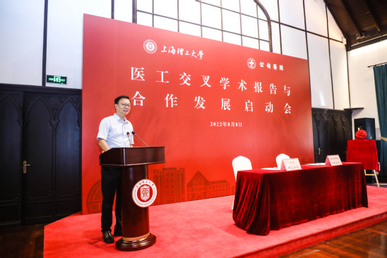 8月8日上午,上海理工大学—上海市浦东新区公利医院医工交叉学术报告与合作发展启动会在学校大礼堂二楼会议厅举行。市卫健委党组书记章雄,市教委副主任孙真荣,浦东新区卫健委副主任郁东海,公利医院院长姜宁、党委书记严建军,我校党委书记吴坚勇,校长丁晓东,校学术委员会主任庄松林,校党委副书记孙跃东以及公利医院领导、校相关部门、学院负责人、师生代表参加会议。会议由副校长刘平主持。