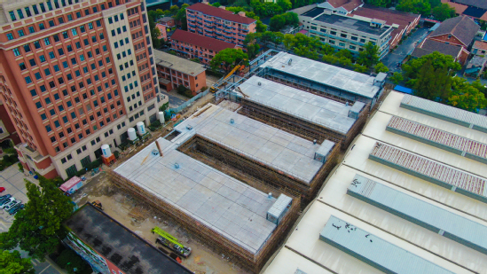 516号校区改扩建工程全面加速建设,计划年底完成结构封顶;第七期学生公寓钢结构安装完成;海安路地下通道工程有序推进,预计9月底竣工;第四教学楼大修、图文信息中心维修工程、复兴路校史馆建设……涉及到十多幢校园建筑的大修工程也在暑期全面开工;军工路1100号校区总计6万多平方米的教学楼、图文信息中心、学生公寓等改扩建工程工作也在紧锣密鼓地推进中。
