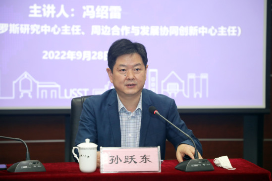 9月28日上午,党委中心组举行国际形势政策报告会,邀请华东师范大学终身教授、周边合作与发展协同创新中心主任,俄罗斯研究中心主任,我校上海公共外交研究院专家咨询委员会成员冯绍雷以“俄乌冲突的影响和启示”为题作专题辅导。校院(机关)两级中心组成员、上海公共外交研究院教师代表参加学习。校党委副书记孙跃东主持学习会。