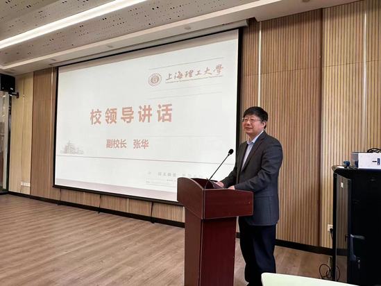张华同与会职能部处负责人甘屹、刘伟、徐琳、刘威、郝润科,国家大学科技园总经理李双全,研究生工作部周琨广,学生代表王泰淇共同启动上海理工大学第九届中国国际“互联网+”大学生创新创业大赛,张华为“青年红色筑梦之旅”实践团队出征授旗,鼓励各位参赛同学在2023年大赛中奋力拼搏、再创佳绩。
