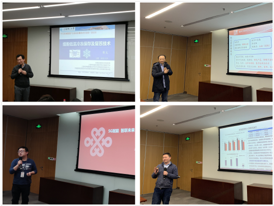 会上举行欢迎仪式,庆祝上海未凡医学检验实验室等6家新成员单位加入,希望大家携手同心、合作共赢,协同创新推进医工交叉融合和人类健康事业发展。学校健康学院生物系统热科学研究所所长胥义教授,材化学院副院长、英国皇家化学学会会士缪煜清教授,中国联通装备制造军团生物医药行业总监、干咏淳校友,万和证券上海仙霞路营业部总经理、金融校友会王宇麟校友等嘉宾,分别做了“细胞低温冷冻保存及复苏技术”“铋科学与健康医学材料研究”“5G全联接工厂赋能医疗装备行业”“医疗器械行业回顾与展望”等行业前沿动态主题分享。各联盟单位及校友代表围绕抱团取暖、集聚创新资源,协作整合、深度业务链接等话题深入开展交流讨论。