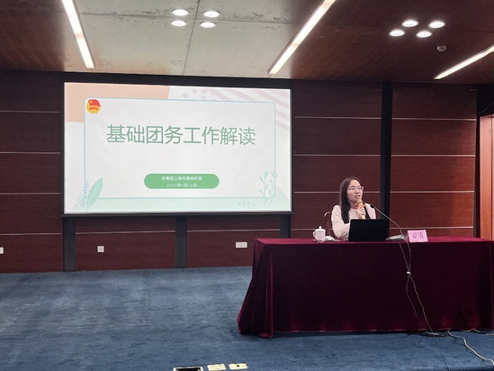培训特邀团市委组织部夏琰老师就基础团务工作进行详细解读。夏琰老师围绕团组织建设、团干部队伍建设、团员队伍建设三个方面展开讲解,对年度基础团务工作计划、组织设置、“三会两制一课”制度、“智慧团建”系统、学社衔接等工作内容进行了梳理,对各基层团组织进一步加强团支部设置,规范化开展团的组织生活会、团员发展、团员推优、团籍注册、团情统计等工作等提出了建议和要求。她还帮助解答了团支书们在工作中常见的系列问题。