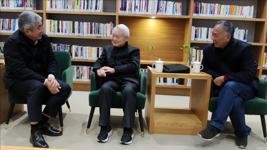 王凌宇详细询问了苏定强院士的工作生活情况,高度赞扬了他在科研领域的卓越贡献,并感谢他对母校和教育事业的关心支持。苏定强院士深情回忆了与母校互动合作的点点滴滴,为母校的发展变化由衷感到高兴,还介绍了自己最新的科研成果。