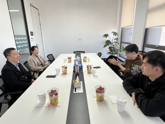 胧爱集团创始人、董事长蒋公宝校友,集团联合创始人、常务副总裁马偲琪校友,集团联合创始人、蓝军部总经理宋珊珊校友等热情接待了理学院一行。马偲琪介绍了公司的发展历史、业务结构、公司理念以及近期开展的新业务,她表示将继续推动院企深入合作。蒋公宝代表集团对学院一行表示欢迎,他希望能够结合大学生创新创业项目等推动和学院更好地合作。