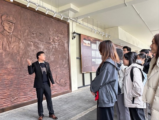 1919年至1920年间,先后六批学生共计656人从黄浦码头乘船赴法留学,其中包括周恩来、邓小平、聂荣臻、蔡和森等革命前辈。在秦皇岛路码头一层的留法勤工俭学运动浮雕墙前,马克思主义学院邢中先老师绘声绘色地为同学们介绍了一百年前一批批青年学子从这里出发,留法勤工俭学,追求新知的历史事迹。让同学们不忘历史,回望初心、感悟初心、坚守初心。