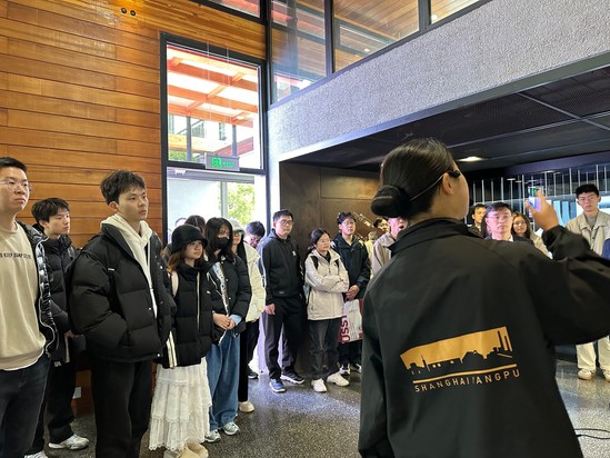 师生们在杨浦滨江人民城市建设规划展示馆前合影