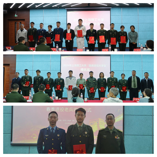 为深入学习宣传贯彻党的二十大精神,认真贯彻落实习近平总书记关于退役军人及双拥工作的重要论述,持续加强退役军人思想政治教育引领工作,讲好优秀退役军人故事,发挥先进典型示范引领作用,4月3日下午,学校举行2024年最美退役大学生评选暨春季退役老兵欢迎仪式。上海市教育委员会学生处一级调研员赵靖茹,上海市委党校学员工作处正处级班主任江波,杨浦区人武部副部长李叶楠,杨浦区退役军人事务局副局长闵海莲,上海市警备区领导,中国海警局某部领导,上海海关学院学工部部长窦荣军,同济大学党委武装部副部长徐汉明,校本科生院院长、武装部部长甘屹,学工部副部长刘伟,各二级学院党委副书记,专武辅导员代表,2024 年春季退役大学生,2024 年上海理工大学“最美退役大学生”候选人及亲友团参加活动。出版学院 2024 年春季退伍研究生梁靖主持活动。