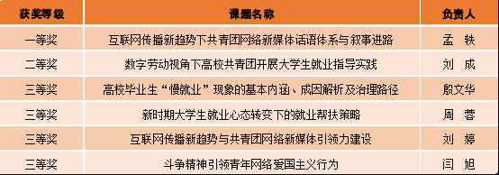 近日,共青团上海市委员会公布了2023年度上海青年工作课题结项评审结果及“上海共青团调研奖”获奖名单。我校共有6个课题获奖,其中一等奖1项、二等奖1项、三等奖4项,取得新的突破。
