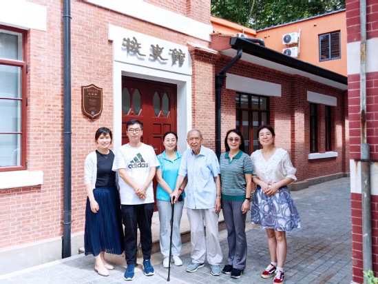 9月14日上午,94岁高龄的国立高机1951届校友范恒光,在女儿范蓓、范蕾的陪同下,回到了阔别73载的复兴路校园,寻访当年生活、学习和从事地下斗争留下的印迹,受到档案馆孔娜、吴禹星、翁佳等热情接待。