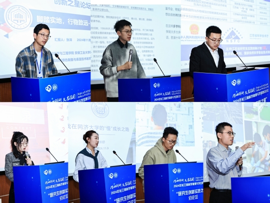 安徽工业大学材料科学与工程学院博士研究生张泽率先带来“脚踏实地,行稳致远 —— 我的科研学习感悟”的分享,复旦大学新闻学院博士研究生丁超逸以“问寻‘新’事,学行相长 —— 做卓越而有趣的新闻人”为主题分享经验,江苏大学博士研究生李昊明“以科研探索,书写成长篇章”为题讲述经历。同济大学王新舒博士专注医学科研,激励研究生在科研中保持耐心和专注,为推动医学进步不懈努力,实现科研与人生成长的双赢。中科院杨阵海博士剖析科研历程,引导研究生要依据自身情况选择方向,积极拓展知识领域,勇于创新突破,在科研道路上稳步前行。