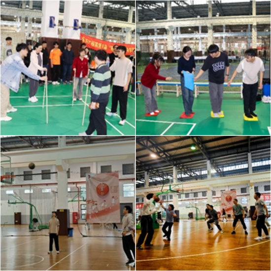 在拔河比赛中,老师们与研究生们齐心协力,共同为胜利拼搏;羽毛球双打赛场上,师生配合默契,展现高超球技;定点投篮环节,大家更是跃跃欲试,投出了一个个精彩瞬间。趣味游戏环节同样精彩纷呈,不倒森林考验团队协作,搭河过桥激发创新思维,拼五角星锻炼动手能力,魔盒钉子则挑战耐心与细致。